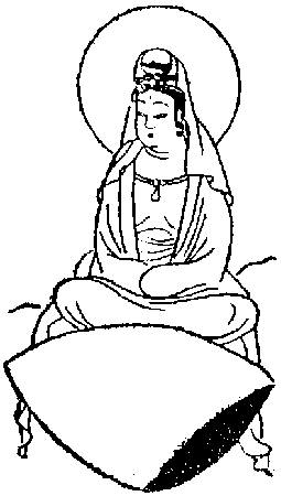 三十三觀音之一,顯現其菩薩身,將蛤蜊置身前面而坐。