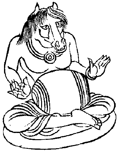 鳩槃荼(異類)Kumbha^n!d!a,又作弓槃荼、究槃荼、恭畔荼、拘槃荼、俱槃荼、吉槃荼、拘辨荼、鳩滿拏。鬼名。噉人精氣之鬼。譯作甕形鬼、冬瓜鬼。南方增長天王之領鬼。探玄記二曰:「鳩槃荼,依正法華經,名厭眉鬼。噉人精鬼等,亦名冬瓜鬼。王名毘樓勒,此云增長王,是南方天王。領二部鬼:一名鳩槃荼,二名薜荔多,從所領為名。」慧苑音義上曰:「鳩槃荼,此云陰囊,亦曰形印,謂此之類陰囊。狀如冬瓜,行時擎置肩上,坐時即便據之,由斯弊狀,特異諸類,故從之為名。舊云冬瓜者,以其事猥而不顯故,使人謬解耳。」玄應音義二十一曰:「究槃荼,或作恭畔荼,又作弓槃荼,皆一也。此云甕形,頗似冬瓜也。」圓覺經曰:「爾時有大力鬼王,名吉槃荼,與十萬鬼王,即從座起,頂禮佛足。」梵語雜名作「鳩滿拏」。後因用以喻婦人老醜之狀。唐任瓖畏妻。杜正倫譏弄之。瓖曰:婦當畏者三。少妙之時。如生菩薩。及兒滿前。如九子魔母。至五六十時。傅施妝粉。或青或黑。如鳩槃荼。見御史臺記。
