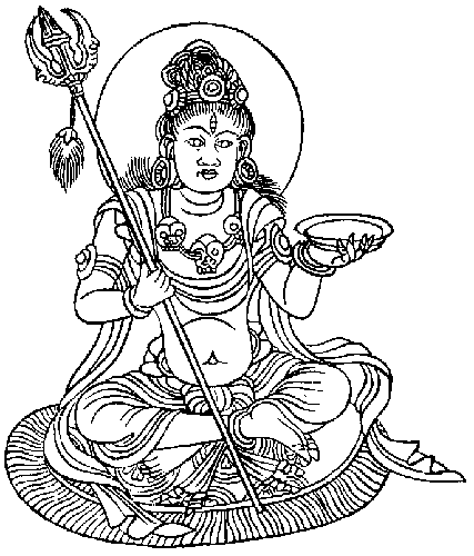 伊舍那(天名)I^s/a^na又作伊邪那,伊賒那。居於欲界第六天之天神名。胎藏界曼陀羅位於外金剛院之上首。十二天供儀軌曰:「伊舍那天,舊云摩醯首羅天,亦言大自在天也。乘黃豐牛,左手持劫波杯盛血,右手持三戟鎗,淺青肉色,三目忿怒,二牙上出,髑髏為瓔珞,頭冠中有二仰月,二天女持花。印相者:右手作拳,安腰右,左手五指,直豎相著,地水二指屈中節,火風空三指,各少相去。」智度論五十六曰:「伊餘那是大自在天王。」秘藏記下曰:「伊舍那天,黑青色,面上三目,繫髑髏瓔珞,左手持器盤,右手鉾鑞。」胎藏界曼陀羅鈔六詳釋之。瑜伽倫記九曰:「伊舍那者,此云自在,即大自在天。」玄應音義三曰:「伊沙天,此云眾生主。」案,摩醯首羅天居色界之頂,即第四禪,伊舍那天為其化身,居欲界之頂,即第六天。